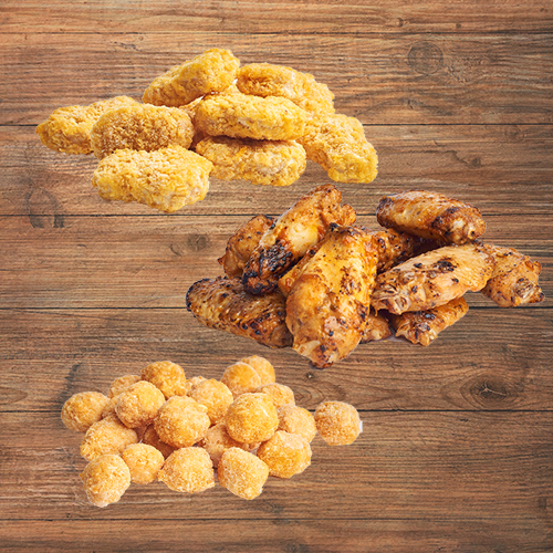 Chicken Wings, Chicken Nuggets, Chicken Balls, Pommes